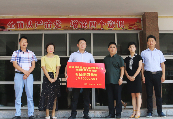 7月23日,陕西博锐特项目管理有限公司总经理唐杰向略阳县兴州街道办和乐素河镇定点定向捐赠了救灾资金8万元,对两镇办的抗洪救灾工作提供支持和帮助。