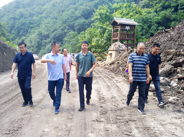 五龙洞镇是7.14暴雨洪涝灾害中受灾较为严重的镇之一,水电路讯一度中断。在通往五龙洞镇的略徽公路刚刚抢通出便道后,杨瑞良一行沿八渡河一路向上,先后到旅游带中川河口节点、中川坝入口节点和五龙洞国家森林公园景区大门沿线、五龙洞小学等处实地察看了各处受灾情况,详细了解全镇抢险救灾、受灾群众安置等工作开展情况及下一步恢复重建工作计划。听取了全镇文化旅游、供水、道路等基础设施受损、抢修情况和受灾群众民政救助工作开展情况。