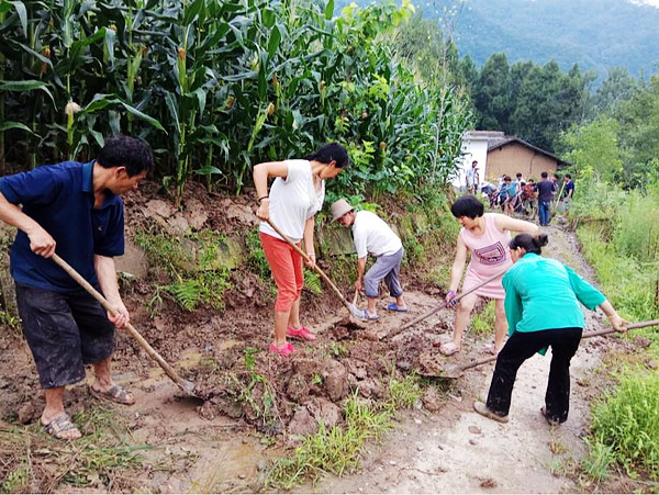 7月19日雨势稍停,该村立即召开党员干部会议,对道路恢复工作做出具体安排,并积极动员农户参与,确保道路恢复抢修工作进展顺利。针对张家沟组、唐家沟组4处塌方严重、方量大的路段,动用大型机械挖掘机进行抢修;对于水沟、路面滚石、污泥等,由党员及村组干部带动农户进行实地清理,确保受损道路尽早恢复通行。同时,该村还对道路安全隐患进行了一次详细排查,对存在安全隐患目前暂不能彻底排除的地段,设立了警示标志,保证群众出行安全。