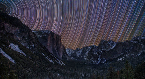 这意味着,如果你抬头仰望头顶天空中的恒星,会发现它们在夜空中移动。靠近两极的恒星会产生最小的圆,而靠近地球赤道的恒星则会产生最大的圆。恒星,就像白日里的太阳一样,每夜每晚从夜空东边移动到西边。每颗恒星每小时大约向西移动15度。星轨其实是圆弧,或者部分圆,随着时光的流逝,它们在永不停歇的转圈移动。